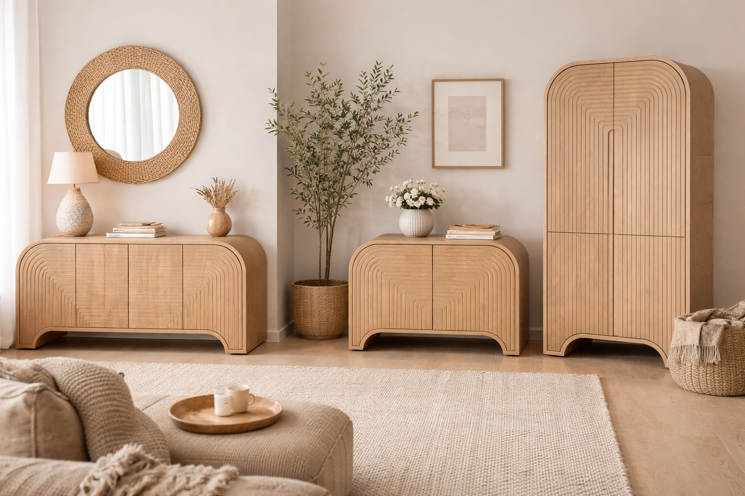 Sorina Reverse Fluted Light Brown Wood Sideboard – Hygge Design House